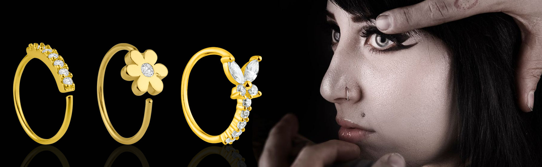 14K Solid Gold Butterfly Design with line of Multi Zircon Nose Hoop