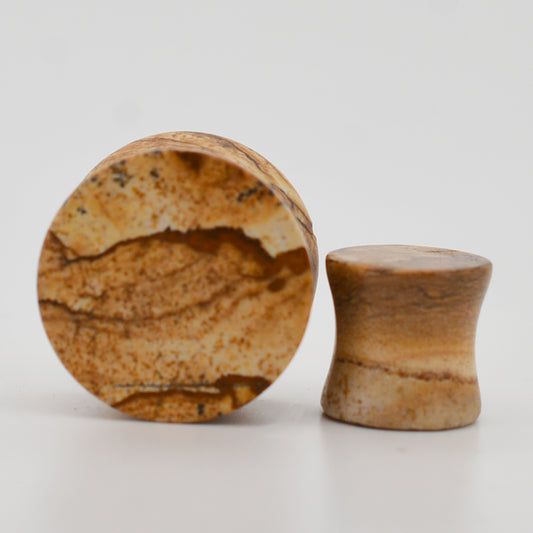 Natural Picture Jasper Organic Stone Double Flare Ear Plugs | Gauges