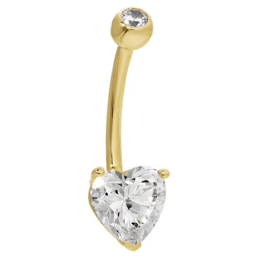 14k Gold Heart Shaped CZ in Bezel Setting Belly Ring
