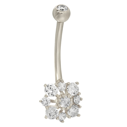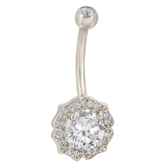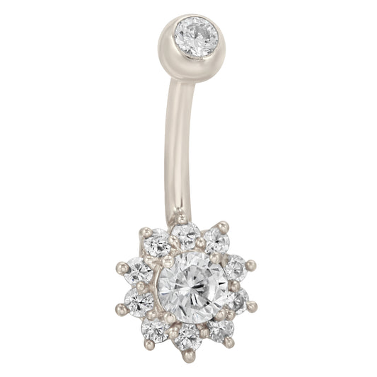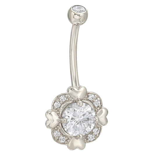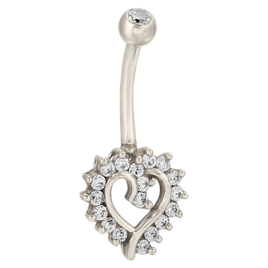 14k Solid Gold Heart Shaped CZ with Multi CZ Around Belly Ring