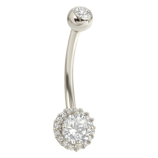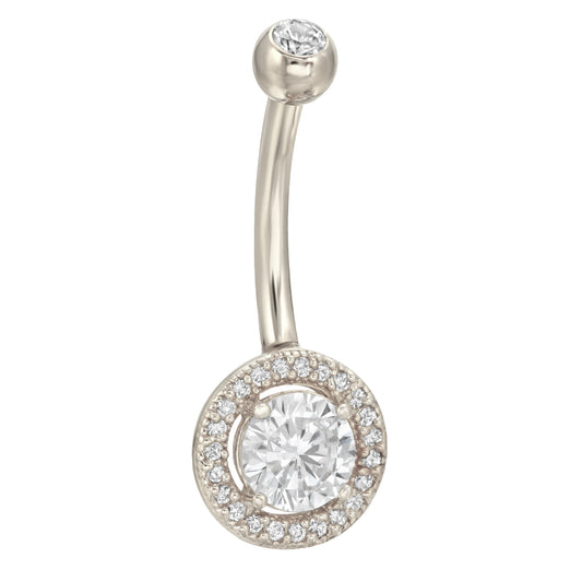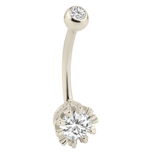 14k Solid Gold Round Zircon in 8mm Casting Bezel Setting Belly Ring