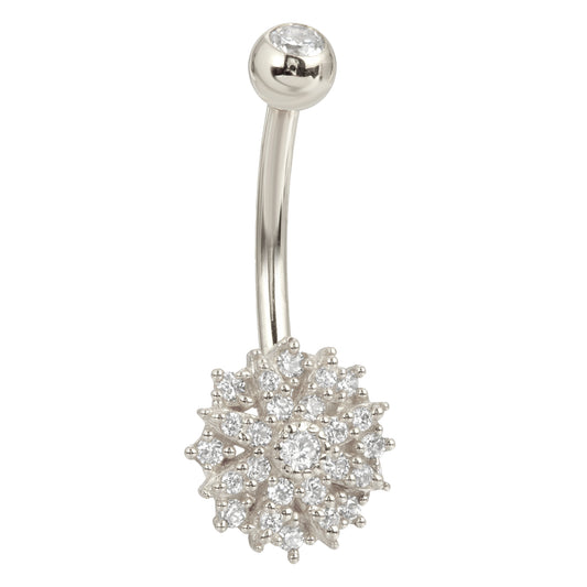 14k Solid Gold Banana Belly Ring with 9.5mm Snow Design