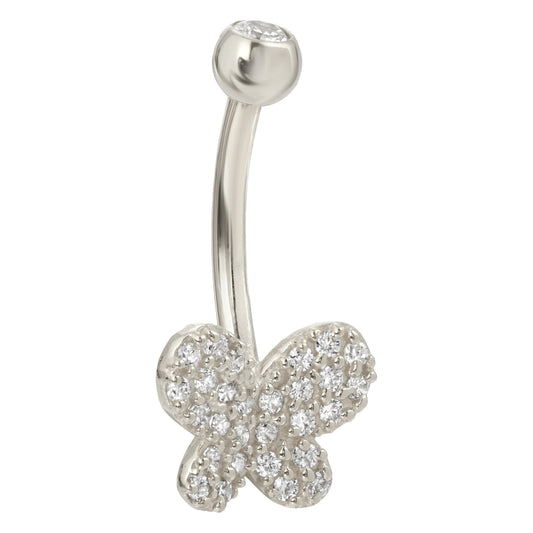14k Solid Gold Banana Belly Ring with 8mm Butterfly Design