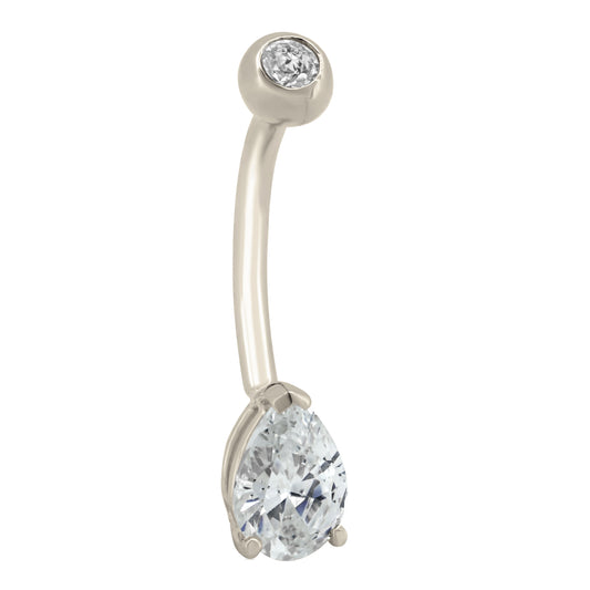 14k Solid Gold Banana Belly Ring with 7x5mm Teardrop