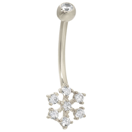 14k Solid Gold Banana Belly Ring with 9mm Snowflake Design