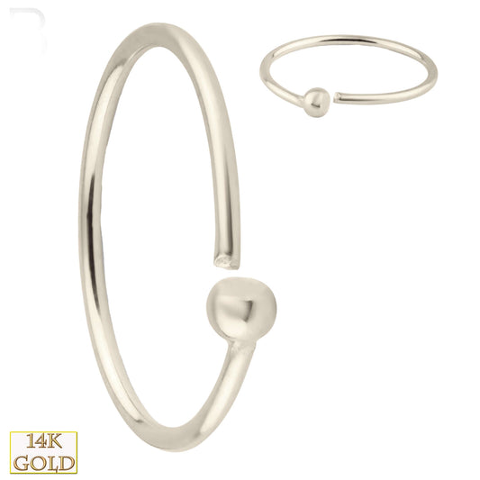 14k Solid Gold Fixed Bead Hoops Piercing Twist to Open