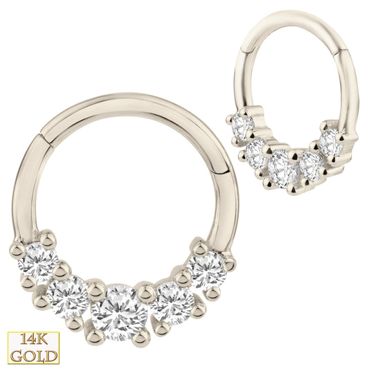 14k Solid Gold Five Zircon Bezel Setting Hinged Hoop
