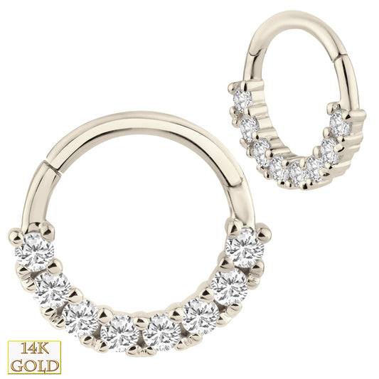 14k Solid Yellow Gold with 11 Zircon Hoop Piercing