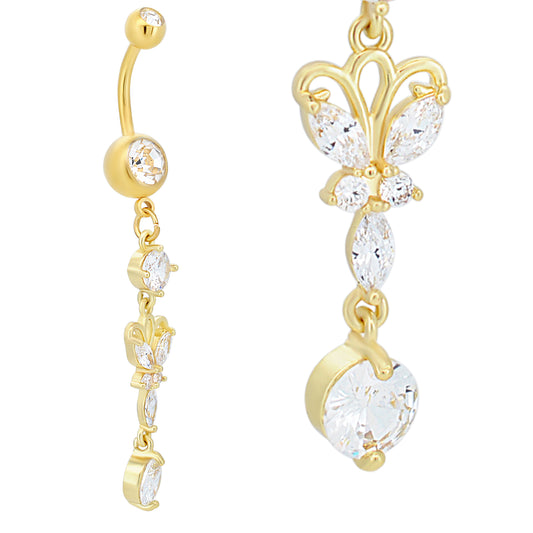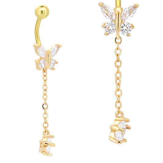316L Stainless Steel Dangling Butterfly with Round Prong Zircon Design Belly Ring