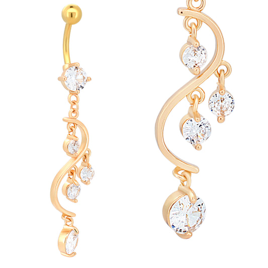 316L Stainless Steel Vine Curtain Zircon Chandelier Dangling Belly Ring