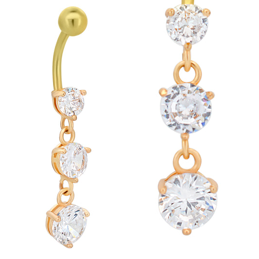 316L Stainless Steel Three Round Zircon Dangling Belly Ring
