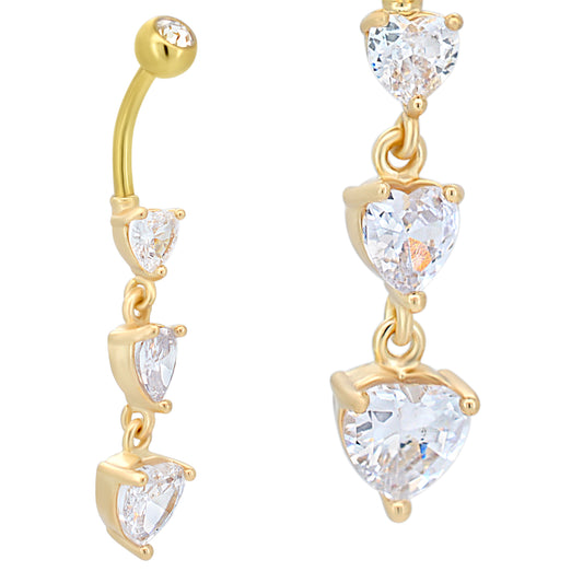 316L Stainless Steel Three Heart Shaped CZ Dangling Belly Ring