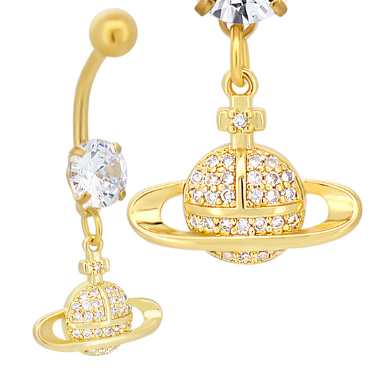316L Stainless Steel Dangling Planet Saturn with CZ Belly Ring