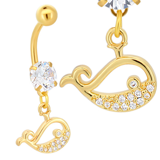 316L Stainless Steel Dangling Blue Whale with CZ Belly Ring
