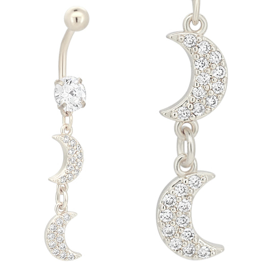 316L Stainless Steel Dangling Two Moons with Multi CZ Belly Ring