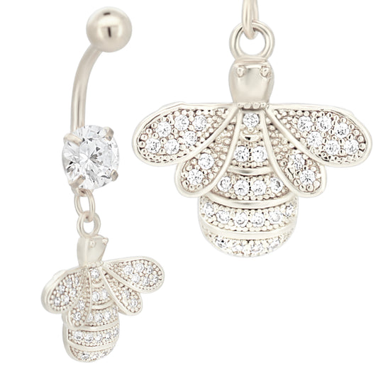 316L Stainless Steel Dangling Bee with Multi CZ Belly Ring