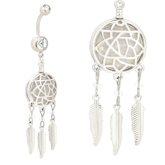 316L Stainless Steel Dangling Opal Dreamcatcher Design Belly Ring