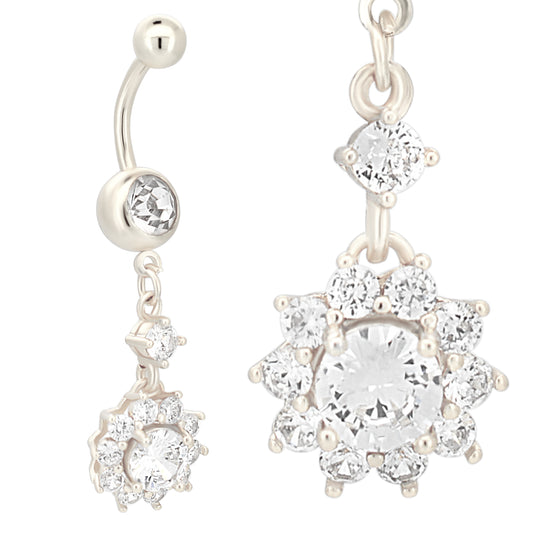 316L Stainless Steel Dangling Prong Setting Flower Zircon Design Belly Ring