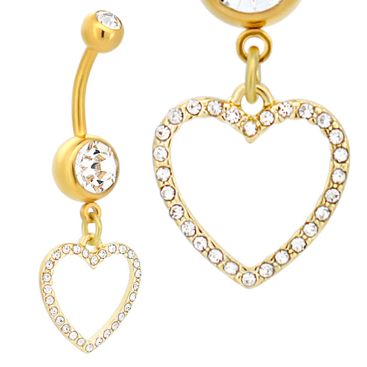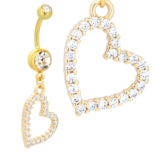 316L Stainless Steel Dangling Hollow Heart with Zircon Design Belly Ring