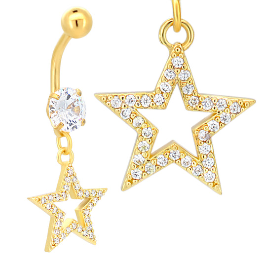 316L Stainless Steel Dangling Star with Zircon Design Belly Ring