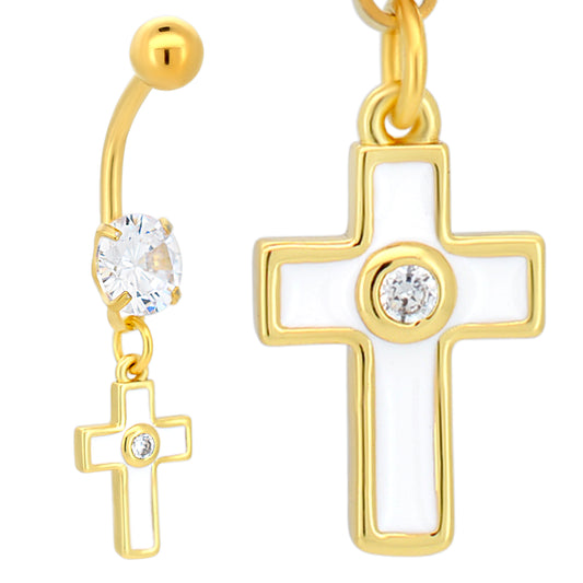 Belly Ring Jewelry 316L Stainless Steel Dangling Cross with Bezel Zircon Design