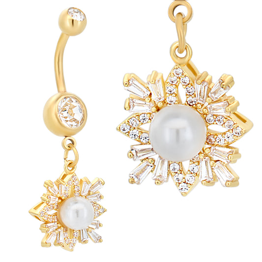 316L Stainless Steel Dangling Snowflakes with Pearl Design Belly Ring