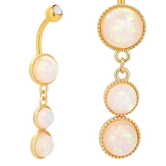 316L Stainless Steel Dangling Triple Round Opalite Design Belly Ring
