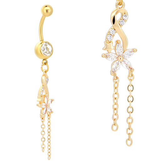 316L Stainless Steel Dangling Infinity with Flower Zircon Design Belly Ring