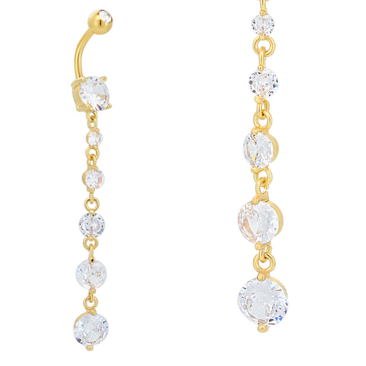 316L Stainless Steel Dangling Lightning Bolt with Multi CZ Belly Ring