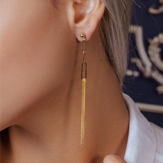 925 Sterling Silver Dangling Paper Clip Earrings Push Backing