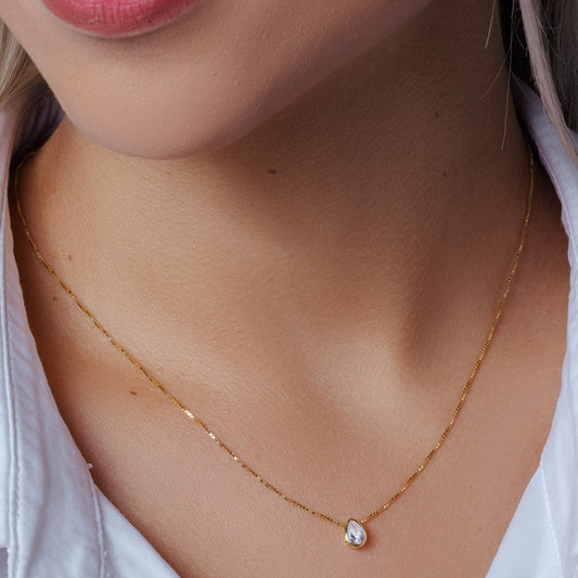 925 Sterling Silver Teardrop Bezel Setting Pendant Box Chain Springring Closure