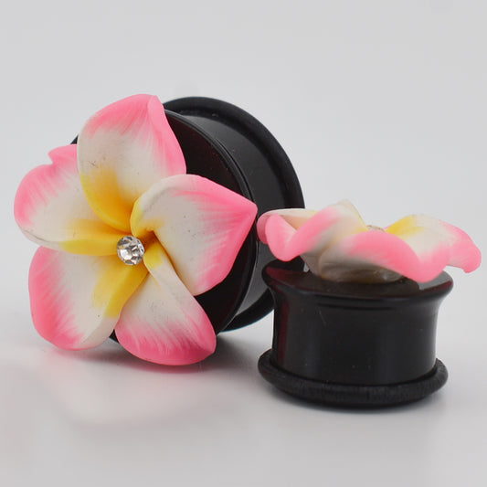 Pink and White Hawaiian Flower Design with O-ring Acrylic Ear Plugs | Gauges