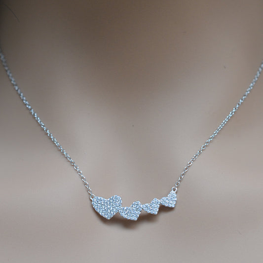 925 Sterling Silver Four Graduated CZ Studded Heart Pendant Necklace