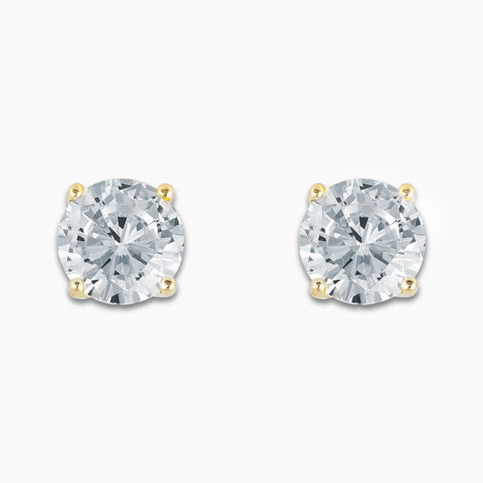 925 Sterling Silver Gold Plated Push Back Earrings with Round Cubic Zirconia