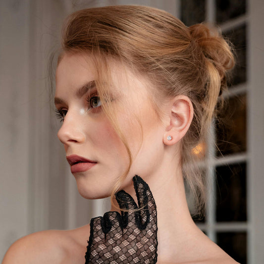 925 Sterling Silver Push Back Earrings with Round Cubic Zirconia