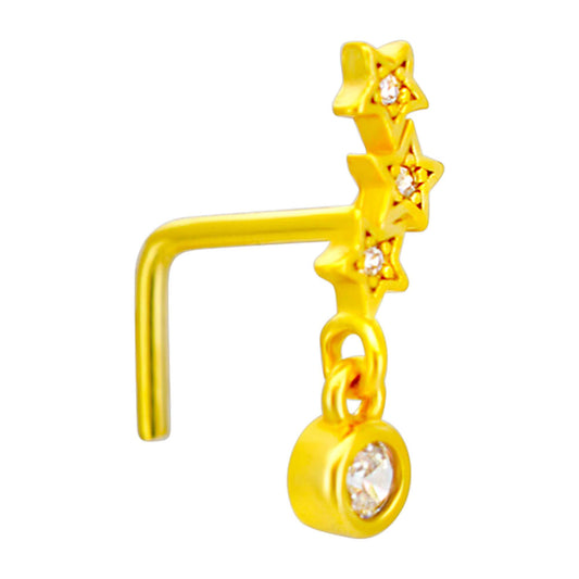 Sterling Silver Three Star Constellation with Dangling CZ L-Shaped Nose Ring