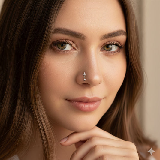 Sterling Silver Lightning Bolt with Dangling CZ L-Shaped Nose Ring