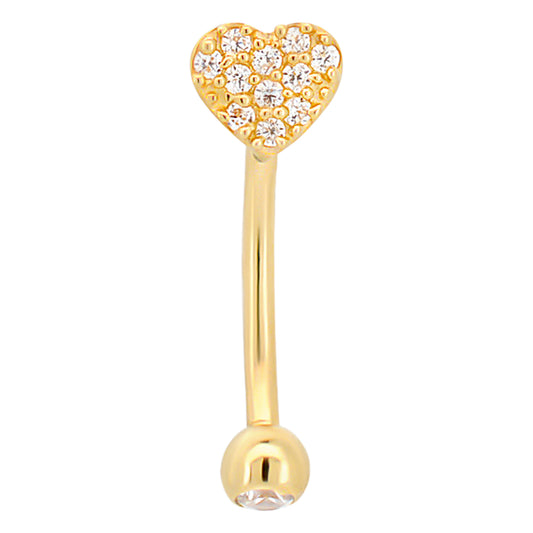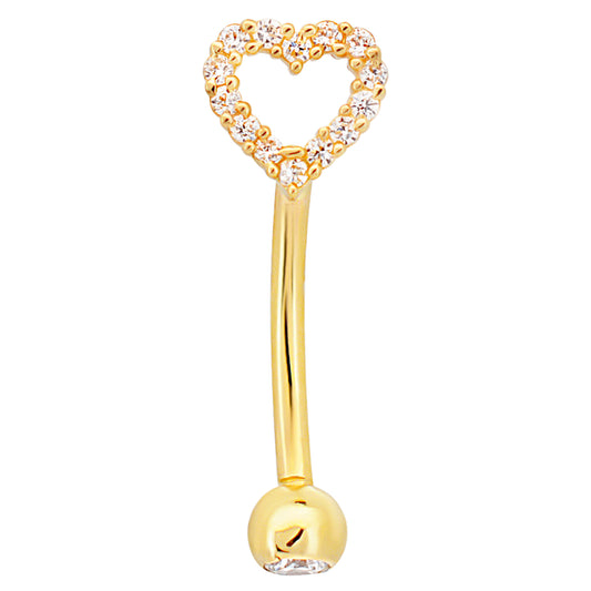 14k Yellow Gold CZ Studded Heart Eyebrow Barbell Externally Threaded Screw