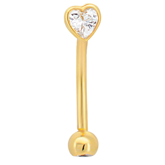 14k Yellow Gold Heart Shaped CZ in Bezel Setting Eyebrow Barbell Externally Threaded Screw