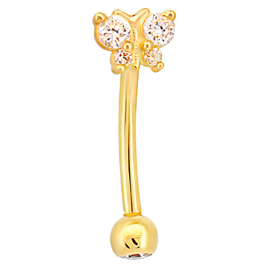 14k Yellow Gold CZ Butterfly Eyebrow Barbell Externally Threaded Screw