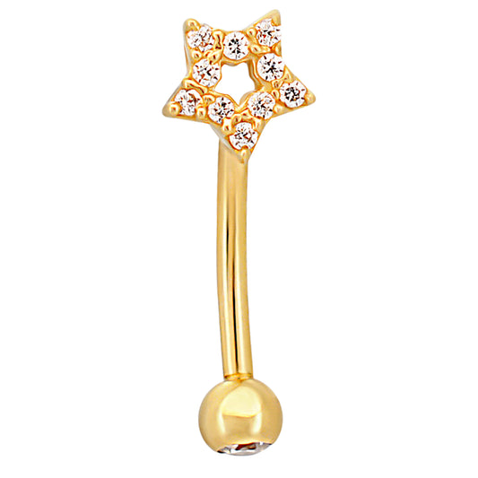 14k Yellow Gold Hollow Star with Multi CZ Eyebrow Barbell Externally Threaded Screw