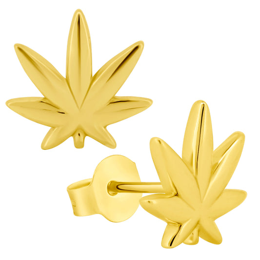 925 Sterling Silver Plain Marijuana Leaf Design Earring Push Backing