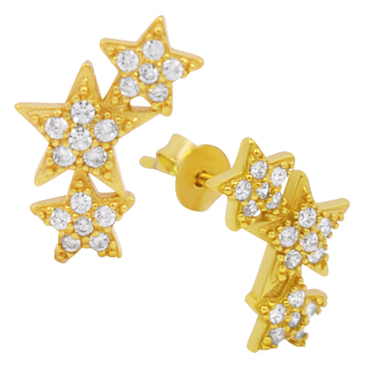 925 Sterling Silver Three Stars Design with Cubic Zirconia Design Earring Push Backing
