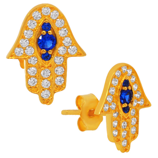 925 Sterling Silver Hamsa Hand Earring Design with Cubic Zirconia Design Earring Push Backing