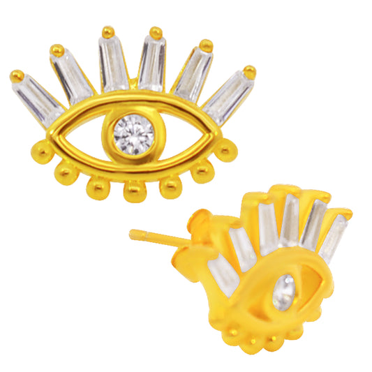 925 Sterling Silver Eyes Earring Stud with Cubic Zirconia for Long Eyelashes and Eyeball Earring Push Backing