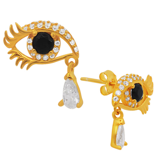 925 Sterling Silver Eyes with Tear Drop Design with Cubic Zirconia Earring Push Backing