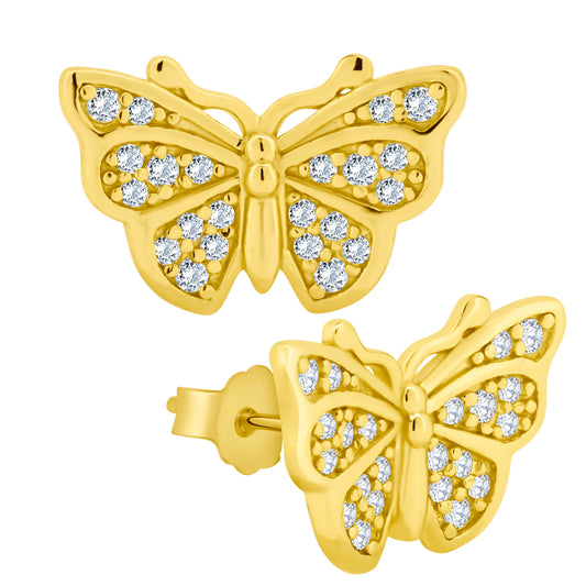 925 Sterling Silver Butterfly Design with Cubic Zirconia Earring Push Backing