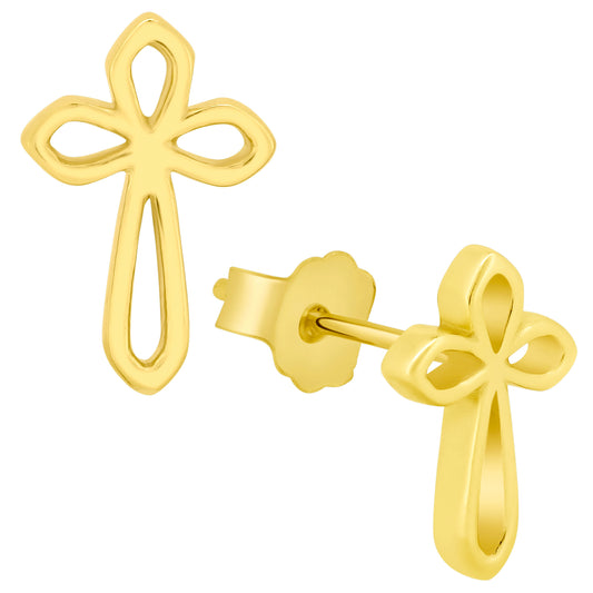 925 Sterling Silver Hollow Cross Design Earring Push Backing