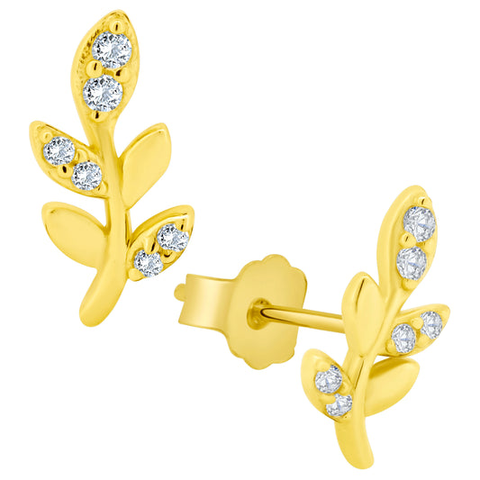 925 Sterling Silver Vine Leaf with Cubic Zirconia Design Earring Push Backing
