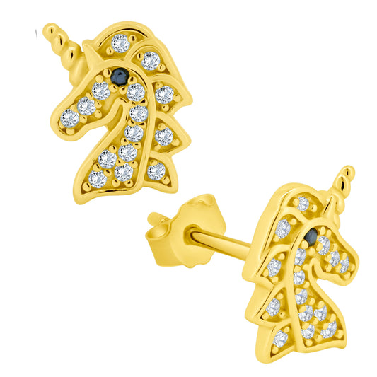 925 Sterling Silver Unicorn with Cubic Zirconia Design Earring Push Backing